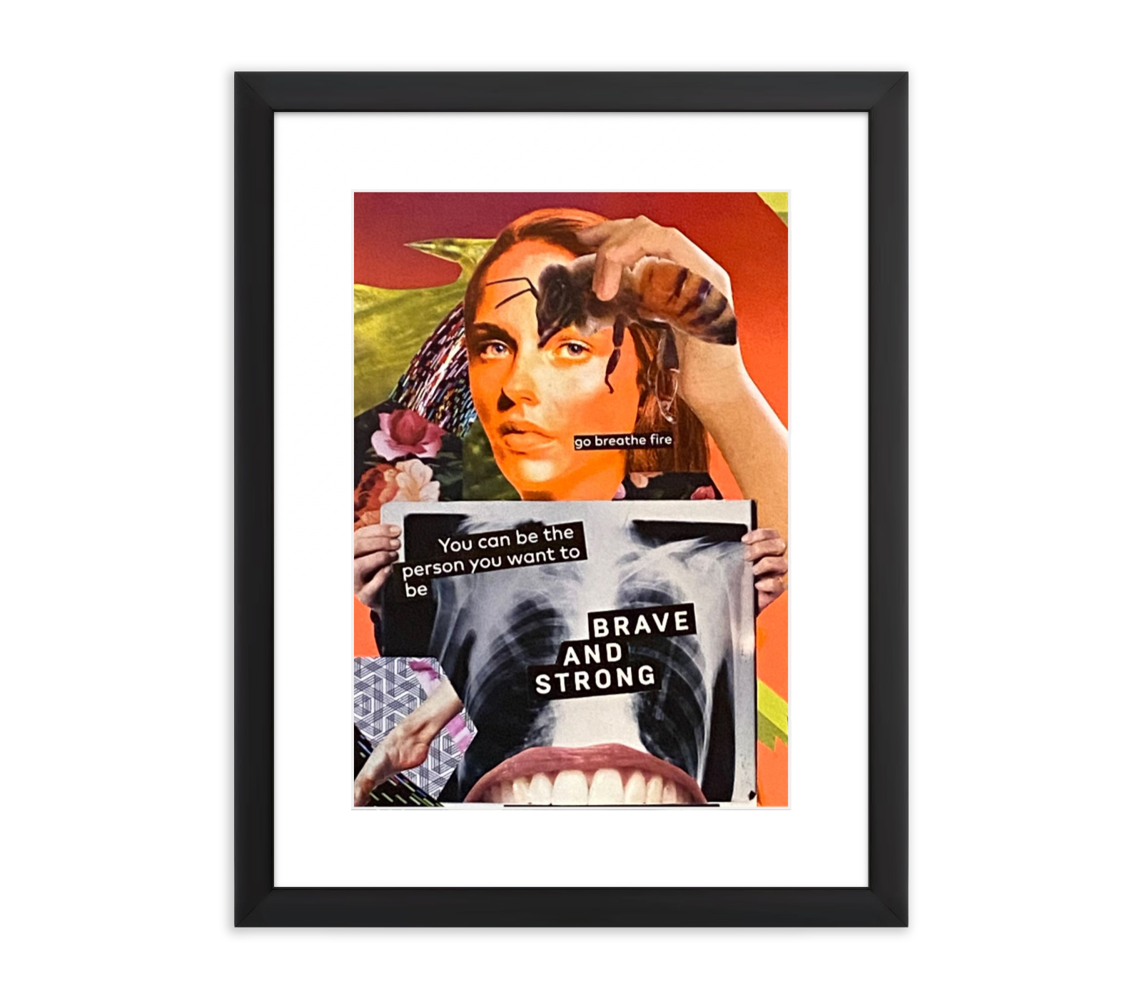 In her hands, she holds the proof of her own vulnerability and her immense potential: an X-ray of her ribcage framed by encouraging words. She reveals her deep, internal structure, the bones that hold her brave and strong. The words speak directly to her spirit: “You can be the person you want to be.”