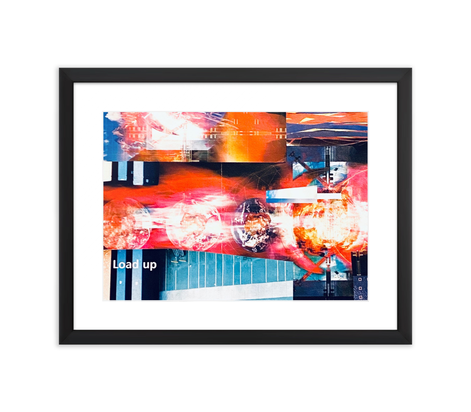 Below, the words “Load up” sit starkly against a grid of cool blue and gray infrastructure. This is the imperative, the command that drives the singularity. It is the endless demand to acquire, process, and contain the volatile information that threatens to burn everything it touches.
