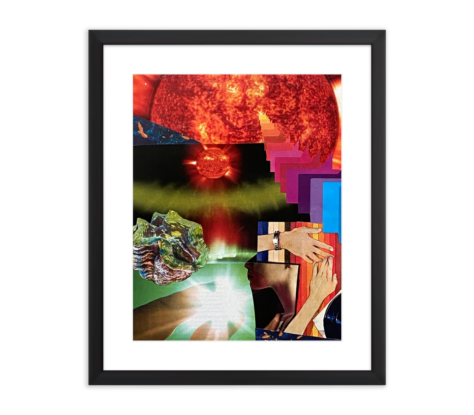 Near the center, an ancient clam shell rests, an organic relic of Earth’s creation. Serving as an anchor to the natural world, a tactile reminder that all life, however cosmic, begins in simple matter.
